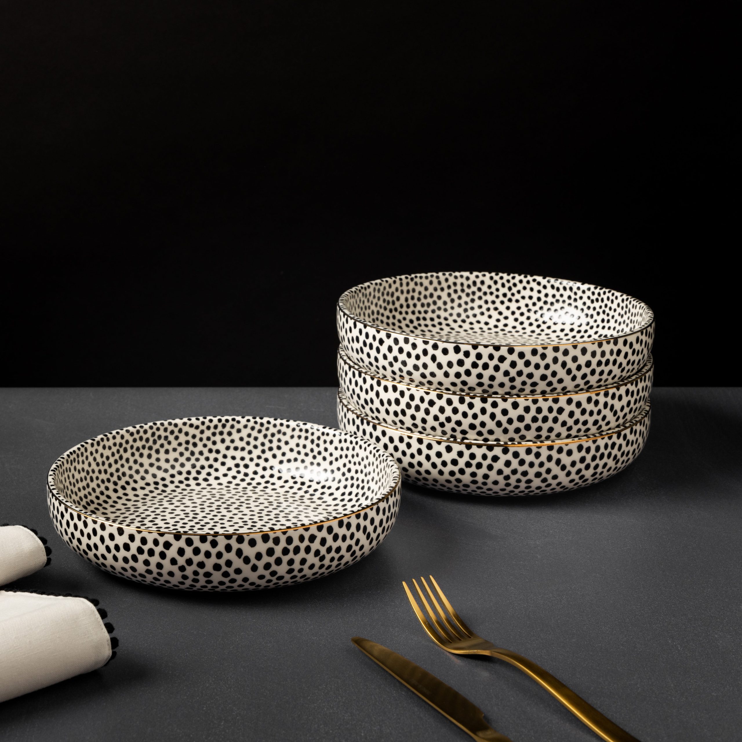 Dot Collection, 4 Pack Stoneware Low Bowls